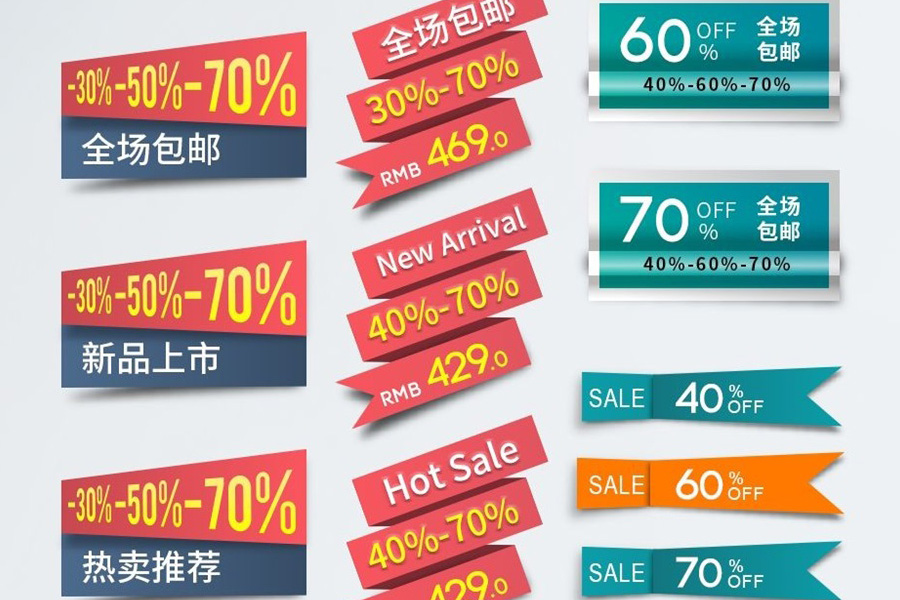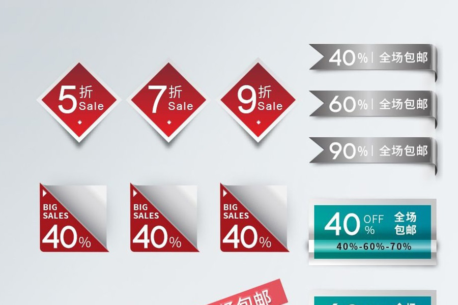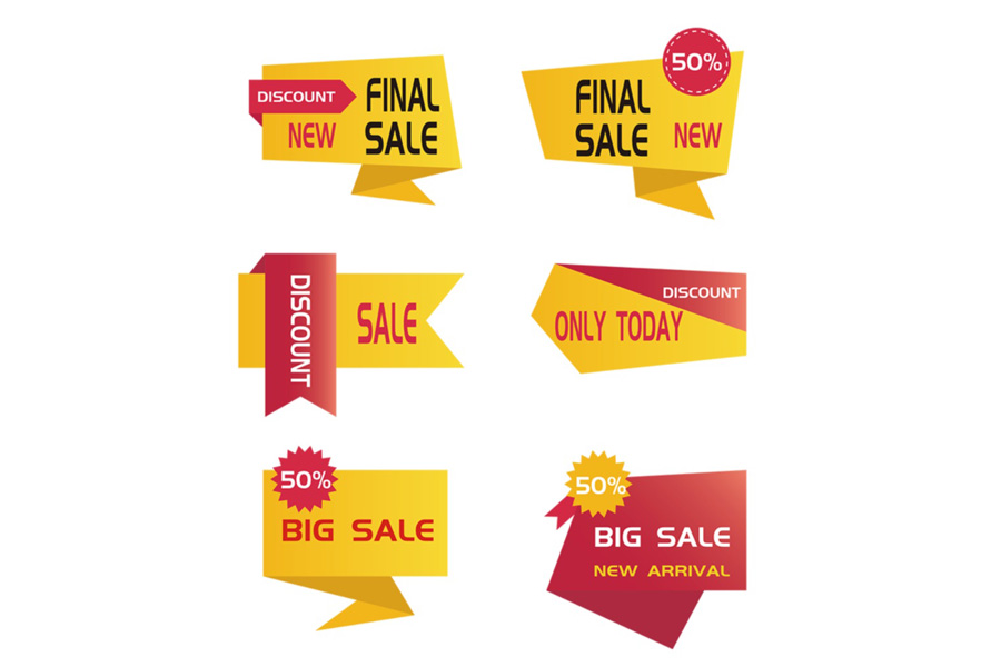 Supermarket Promotions: Discount labels, limited-time offer stickers, free gift tags.